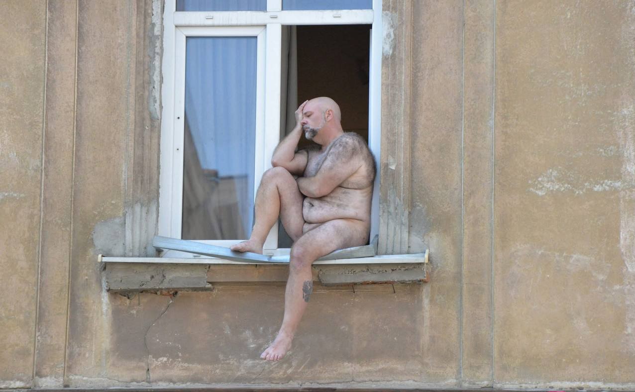 Він, повністю оголений, виліз на підвіконня другого поверху будинку на вул. Театральній, 3, кричав "Хайль Гітлер!" та показував "римський салют". Також персонаж викидав з вікна особисті речі, які, зокрема, пошкодили припаркований поруч автомобіль.